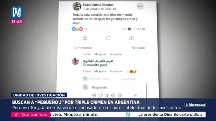 Las investigaciones apuntan al peruano Tony Janzen Valverde “Pequeño J” como presunto autor intelectual del triple crimen ocurrido en Buenos Aires.Tres mujeres fueron asesinadas tras ser torturadas; se cree que el móvil fue el robo de 3 kilos de cocaína por valor de 60 mil dólares. Una mujer estaría implicada y ya hay siete detenidos. Víctor Sotacuro Lázaro fue arrestado por su posible rol logístico. Grabaciones del acto fueron divulgadas en redes cerradas, y operativos continúan en Argentina para capturar al fugitivo y esclarecer el caso.