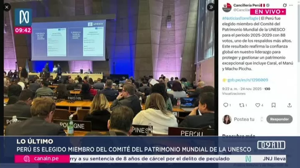 Perú fue elegido como miembro del Comité de Patrimonio Mundial de la UNESCO, con 88 votos en la sede de París. Esta es la cuarta vez que el Perú es elegido