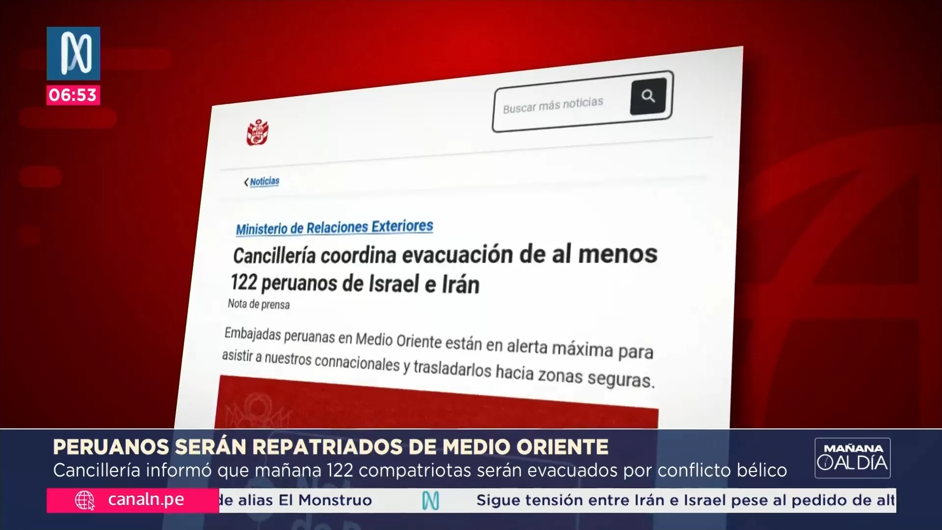 En paralelo, la Cancillería del Perú informó que ha iniciado un proceso de evacuación para al menos 122 compatriotas que se encuentran en regiones de conflicto. El operativo, programado para el miércoles 25, será realizado por vía terrestre desde Israel, Egipto y Turquía, debido al cierre temporal de los aeropuertos.