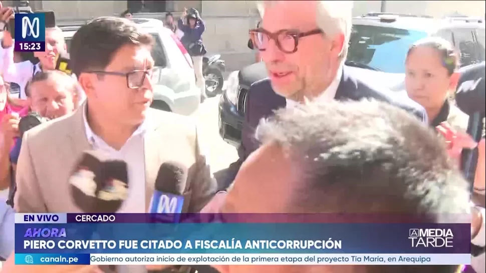 El exjefe de la Oficina Nacional de Procesos Electorales (ONPE), Piero Corvetto, llegó esta tarde a la sede de la Fiscalía Anticorrupción, ubicada en el jirón Miro Quesada, en el Cercado de Lima. Su arribo se dio bajo un estricto resguardo de seguridad y en medio de un accidentado ingreso, donde reporteros y personal de seguridad protagonizaron empujones en el intento por obtener declaraciones.