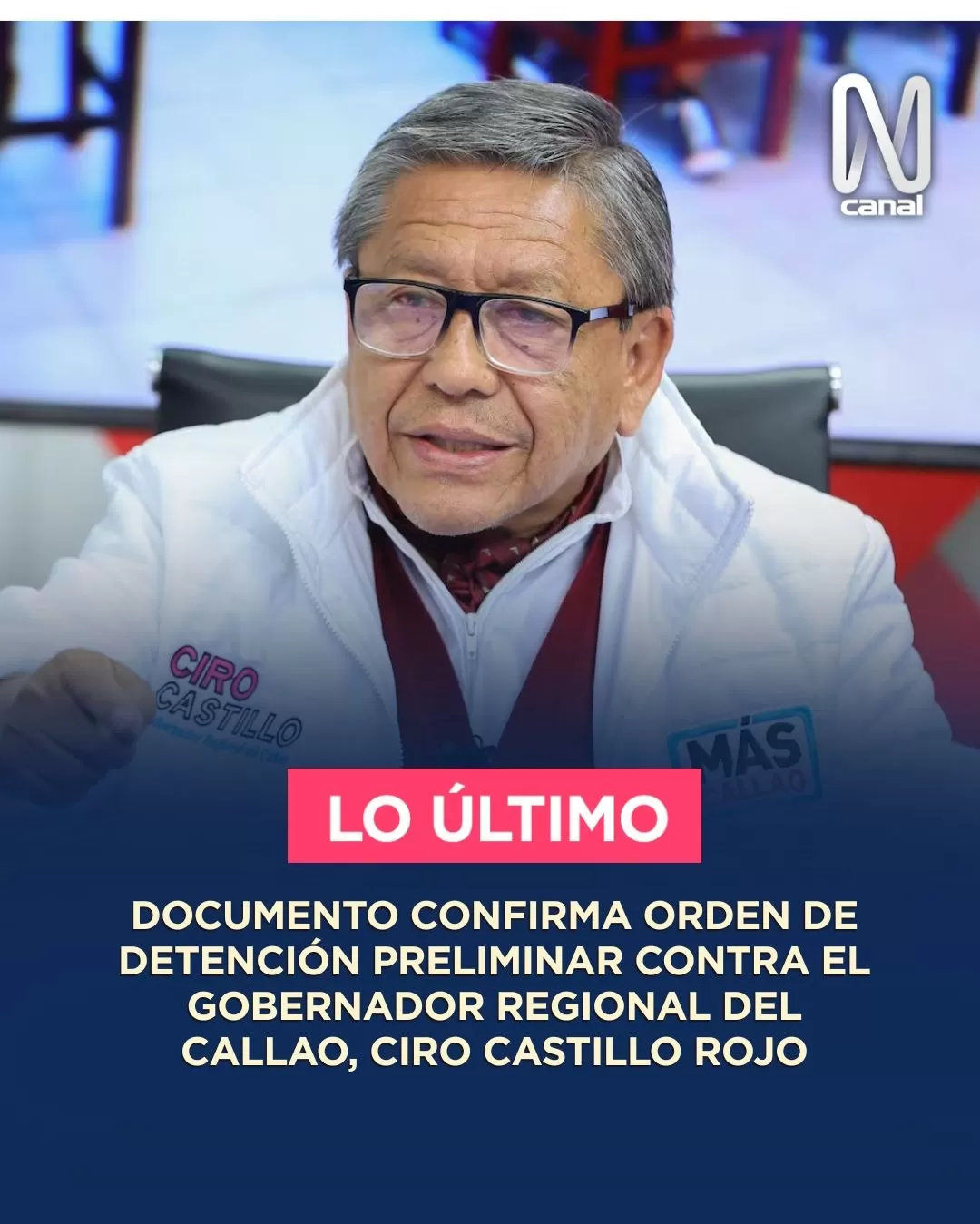 El Poder Judicial ordenó la detención preliminar por 15 días del gobernador regional del Callao, Ciro Castillo Rojo Salas, y otras 13 personas vinculadas a su gestión. La medida fue solicitada por la Fiscalía Especializada en Delitos de Corrupción de Funcionarios del Callao y forma parte de una investigación por presunta colusión agravada.