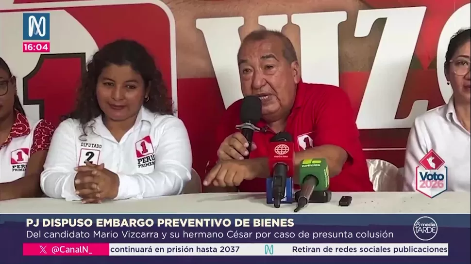 El Poder Judicial (PJ) dispuso el embargo preventivo de inmuebles del candidato presidencial de Perú Primero, Mario Vizcarra Cornejo, y de su hermano César Vizcarra Cornejo, en el marco de una investigación por presuntas contrataciones irregulares en la Municipalidad Distrital de Ilabaya, en la región Tacna. La medida fue adoptada para asegurar el cumplimiento de una eventual reparación civil al Estado.