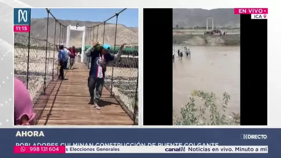 Cansados del abandono estatal, los habitantes del sector Paraya, en el distrito de Ocucaje (región Ica), culminaron por cuenta propia la construcción de un puente colgante que les permitirá cruzar el río Ica durante las temporadas de lluvias.