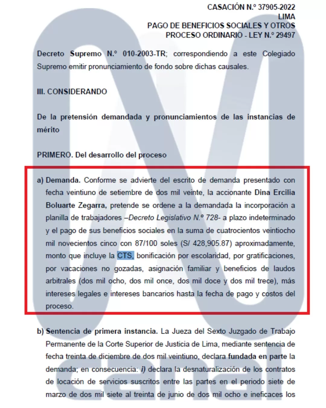 Inicialmente, Boluarte solicitaba más de S/428 mil por conceptos como gratificaciones, CTS, vacaciones, escolaridad y beneficios sindicales. Las instancias previas reconocieron parcialmente sus pretensiones, pero la Corte Suprema resolvió excluir ciertos montos tras calificar algunos cargos como de confianza.