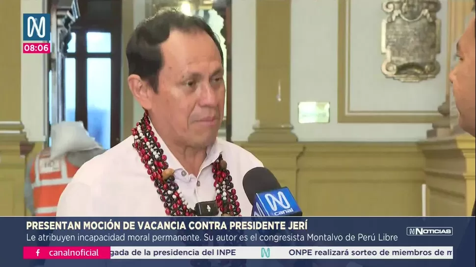 El congresista Segundo Montalvo presentó una moción de vacancia por incapacidad moral permanente contra el presidente de transición, José Jerí. La medida fue calificada como “el camino correcto” por el legislador, quien descartó una eventual censura.