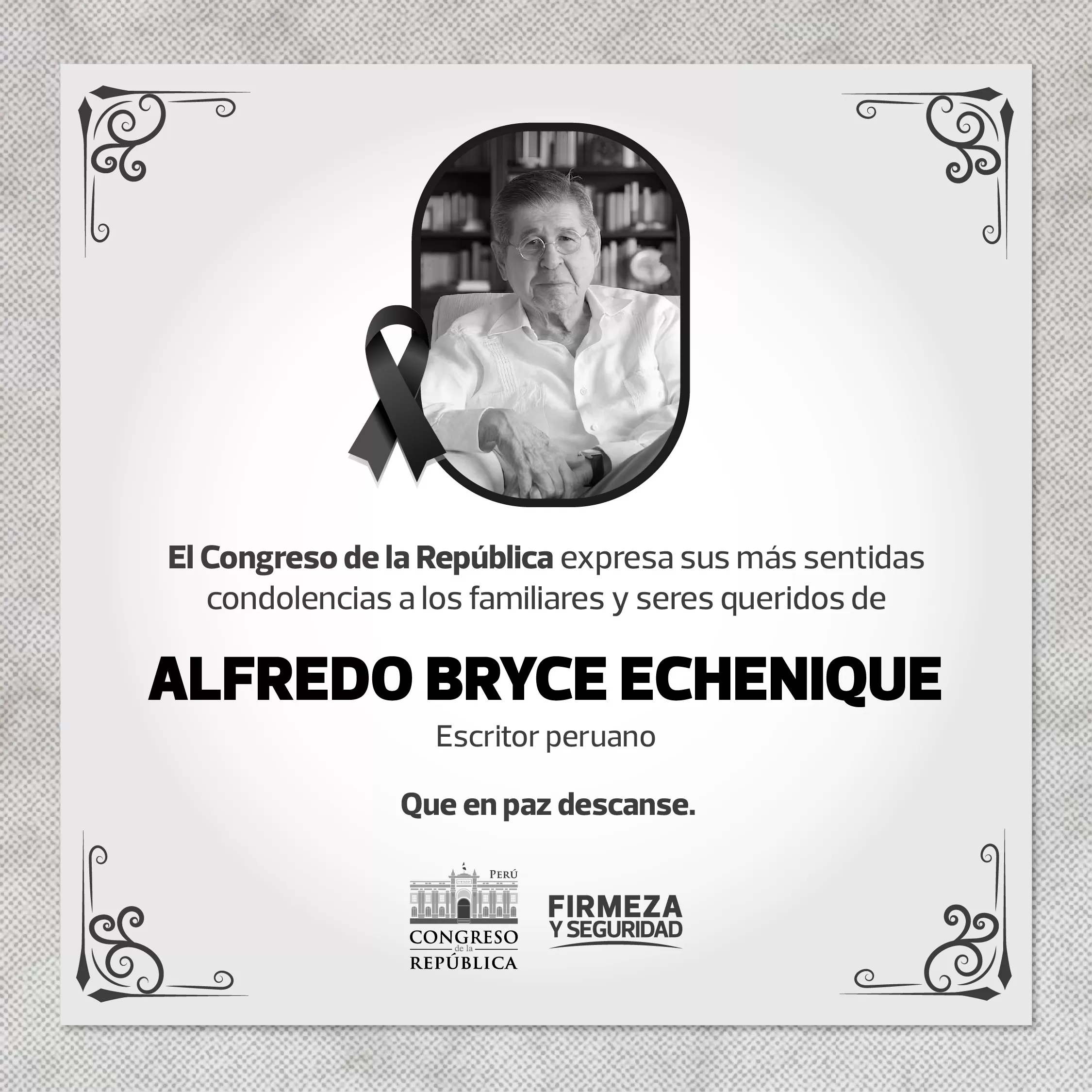 El Parlamento se sumó a los mensajes de pesar por la muerte del escritor peruano y expresó condolencias a sus familiares y seres queridos.