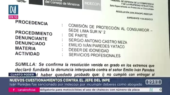 La idoneidad de los altos funcionarios públicos vuelve a estar en debate. Iván Paredes Yataco, presidente del Instituto Nacional Penitenciario (INPE), fue sancionado por el Indecopi por incumplir obligaciones profesionales cuando aún ejercía como abogado penalista. La multa, de más de 16 mil soles, fue impuesta en agosto de 2024, pero recién fue pagada en agosto de 2025, un mes después de haber sido nombrado como jefe máximo del sistema penitenciario nacional.