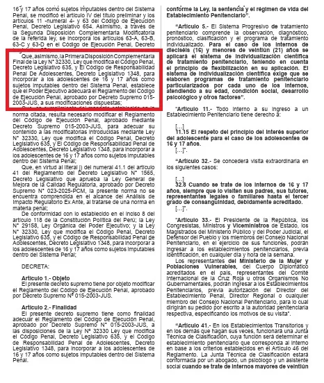Según el Decreto Supremo Nº 022-2025-JUS, esta disposición forma parte de una reciente reforma del Código Penal. El cambio legal establece una ampliación de la responsabilidad penal para los adolescentes de ese rango de edad que incurran en delitos de alta gravedad.