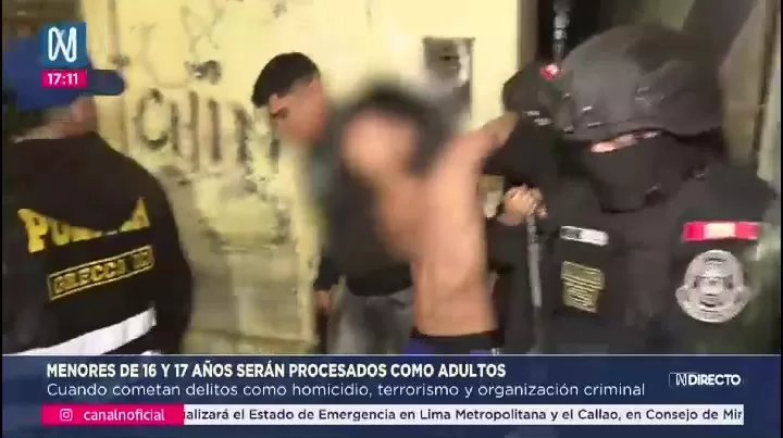El Poder Ejecutivo promulgó un Decreto Supremo que permite que adolescentes de 16 y 17 años sean procesados bajo las reglas del sistema penal de adultos cuando cometan delitos graves. La medida fue publicada este miércoles 5 de noviembre en el Diario Oficial El Peruano y modifica el Reglamento del Código de Responsabilidad Penal de Adolescentes.