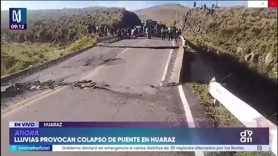 Un puente colapsó la noche del último jueves luego de que la estructura cediera en sus bases, lo que provocó un grave incidente en la vía que conduce a la ciudad de Huaraz.