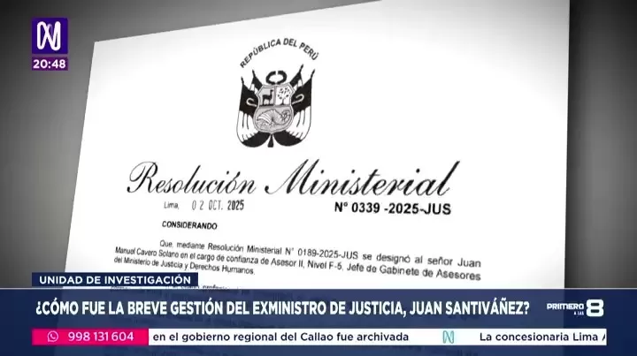 Todo indica que será candidato al Congreso en las próximas elecciones generales del 2026. El exministro del Interior, Juan José Santiváñez, estuvo también en el Ministerio de Justicia y Derechos Humanos, pero apenas 39 días. ¿Cómo fue esa breve gestión? La Unidad de Investigación de América Televisión y Canal N hace un recuento.