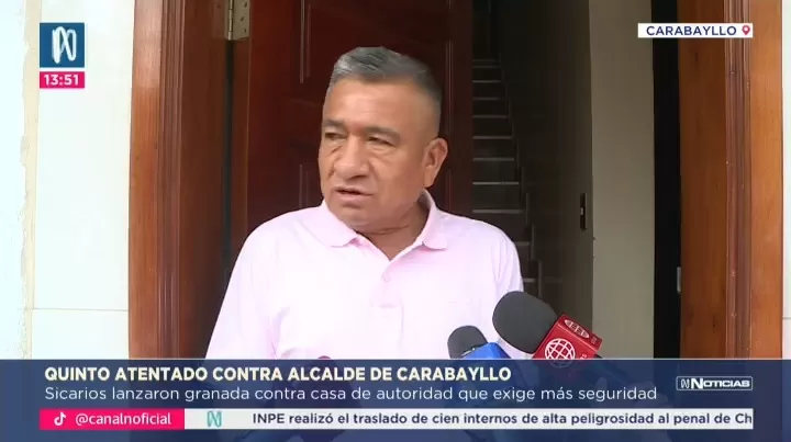 El alcalde de Carabayllo, Pablo Mendoza, denunció un nuevo atentado en su contra tras el lanzamiento de una granada tipo piña contra su vivienda. El hecho, ocurrido en la zona de El Progreso, no dejó heridos ya que el explosivo no llegó a detonar. Mendoza señaló que este es el quinto ataque que sufre y lo vinculó al tráfico de terrenos en el distrito. Afirmó haber recibido amenazas y adelantó que solicitará protección al Gobierno y denunciará lo ocurrido ante la Fiscalía. La zona fue acordonada por la UDEX mientras se retiraba el artefacto. La investigación quedó en manos de la policía especializada.