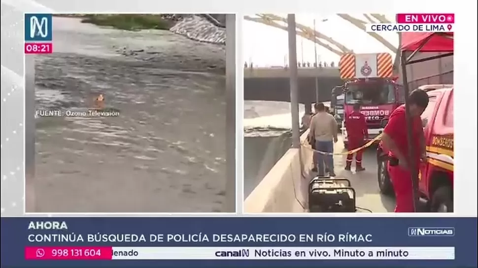 Este sábado se reanudan las labores de búsqueda del suboficial de la Policía Nacional del Perú y miembro del Cuerpo General de Bomberos, Patrick Iroshi Ospina Orihuela, quien fue arrastrado por el río Rímac cuando intentaba rescatar a un perro.