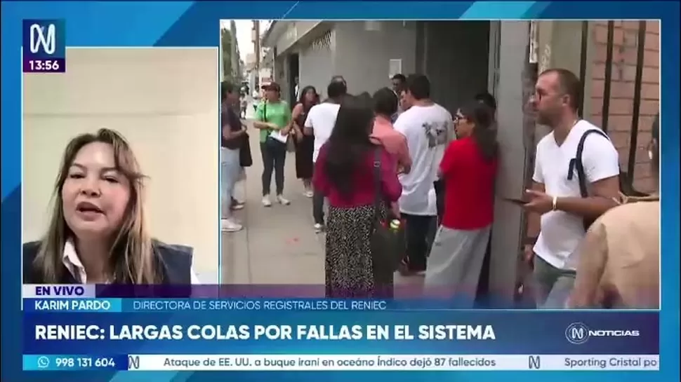 La directora de Servicios Registrales del Reniec, Karim Pardo, señaló que el sistema de la institución no ha presentado fallas, en respuesta a versiones que indicaban una caída del servicio en medio de las largas colas registradas en diversas agencias.