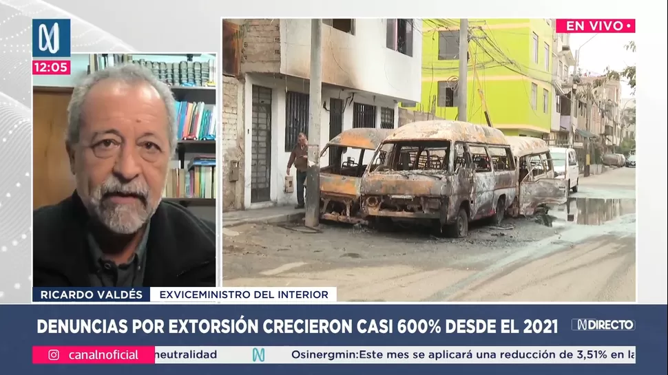 El exviceministro del Interior y actual vocero del Observatorio de Crimen y Violencia, Ricardo Valdés, calificó la extorsión en el Perú como el “delito estrella”, al advertir que las denuncias por este crimen se han multiplicado por siete desde 2021 y que el Estado no ha sido capaz de enfrentar el fenómeno de manera articulada ni eficaz.