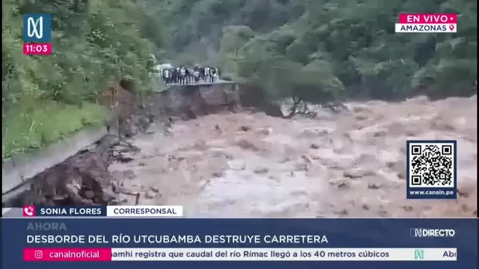 Las intensas lluvias continúan provocando emergencias en el norte del país. Esta vez, el desborde del río Utcubamba arrasó con parte de la carretera Fernando Belaunde Terry, a la altura del kilómetro 286, cerca del distrito de Pedro Ruiz, en la región Amazonas.