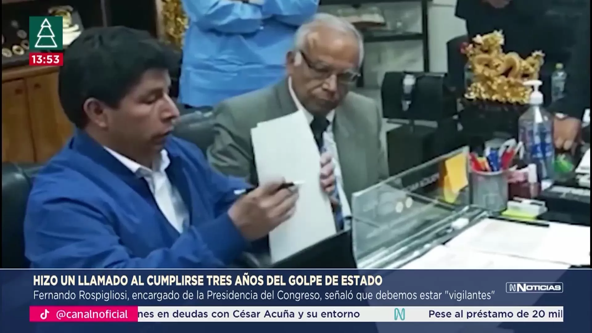 El presidente encargado del Congreso, Fernando Rospigliosi, se pronunció al cumplirse tres años del intento de golpe de Estado protagonizado por Pedro Castillo el 7 de diciembre de 2022. A través de un video difundido en las redes sociales oficiales del Parlamento, el legislador instó a la ciudadanía a mantenerse vigilante y sostuvo que situaciones similares podrían repetirse.