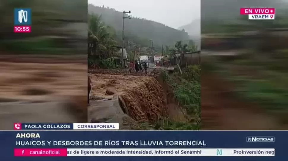 Desde la noche del lunes, lluvias torrenciales afectan distintas zonas del Valle de los Ríos Apurímac, Ene y Mantaro (VRAEM), provocando huaicos, desbordes de ríos y deslizamientos que han dejado comunidades completamente aisladas.