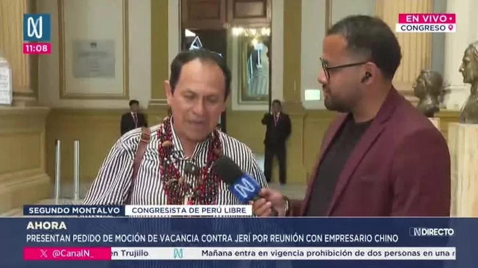 El congresista Segundo Montalvo anunció su respaldo a la moción de vacancia por incapacidad moral contra el presidente José Jerí, tras las recientes revelaciones sobre sus reuniones no oficiales con el empresario chino Zhihua Yang.