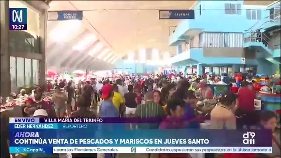 El terminal pesquero de Villa María del Triunfo registra una alta afluencia de compradores durante la mañana de Jueves Santo, en medio de un incremento en los precios de pescados y mariscos por Semana Santa.