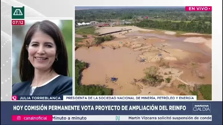 La Sociedad Nacional de Minería, Petróleo y Energía (SNMPE) expresó su rechazo a la ampliación del Registro Integral de Formalización Minera (Reinfo) hasta diciembre de 2026. Su presidenta, Julia Torreblanca, sostuvo que este régimen se ha convertido en un mecanismo de impunidad para la minería ilegal.
