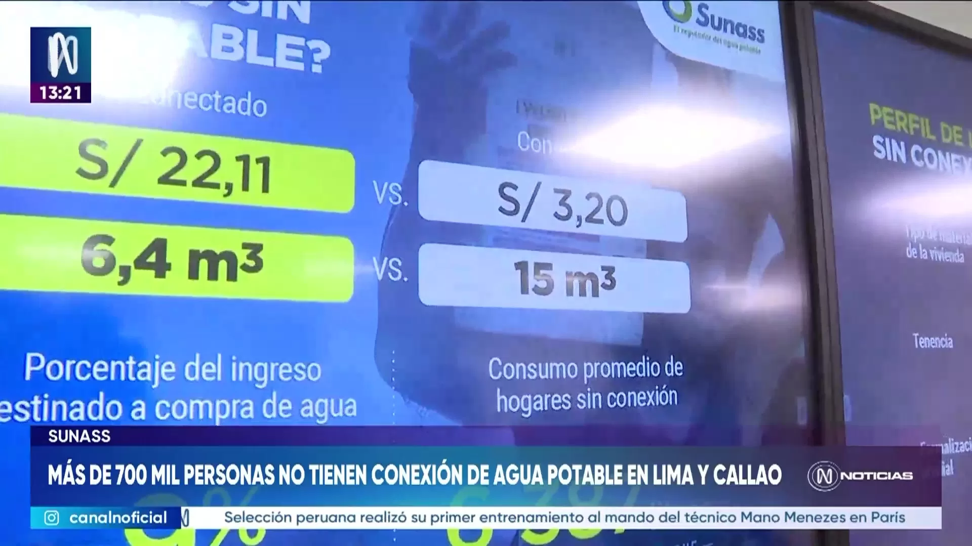 Más de 700 mil personas en Lima y Callao no cuentan con conexión a agua potable, según información de la Superintendencia Nacional de Servicios de Saneamiento (Sunass). Esta situación se registra en sectores urbanos donde el acceso al servicio aún no está garantizado.