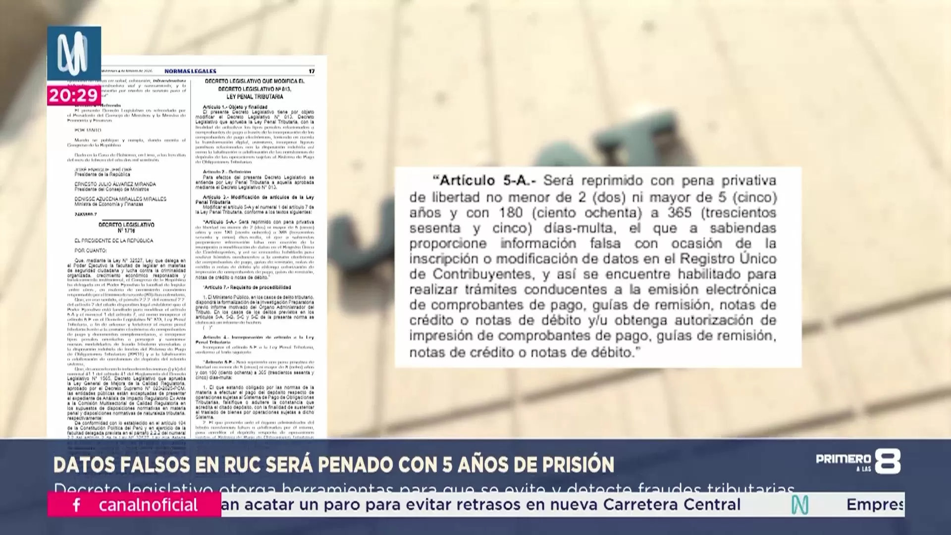 La modificación del Artículo 5-A establece sanción para quien entregue información falsa a sabiendas al momento de inscribirse o al modificar datos del RUC. La pena prevista es de 2 a 5 años de cárcel.