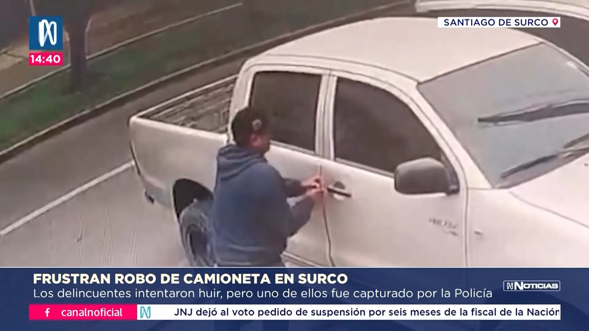 Una intervención oportuna evitó el robo de una camioneta en el distrito de Santiago de Surco, cuando dos sujetos fueron captados intentando ingresar a un vehículo estacionado en la cuadra cuatro de la avenida Andrés Tinoco. Según las autoridades, uno de los implicados fue detenido, mientras que el segundo logró huir del lugar.