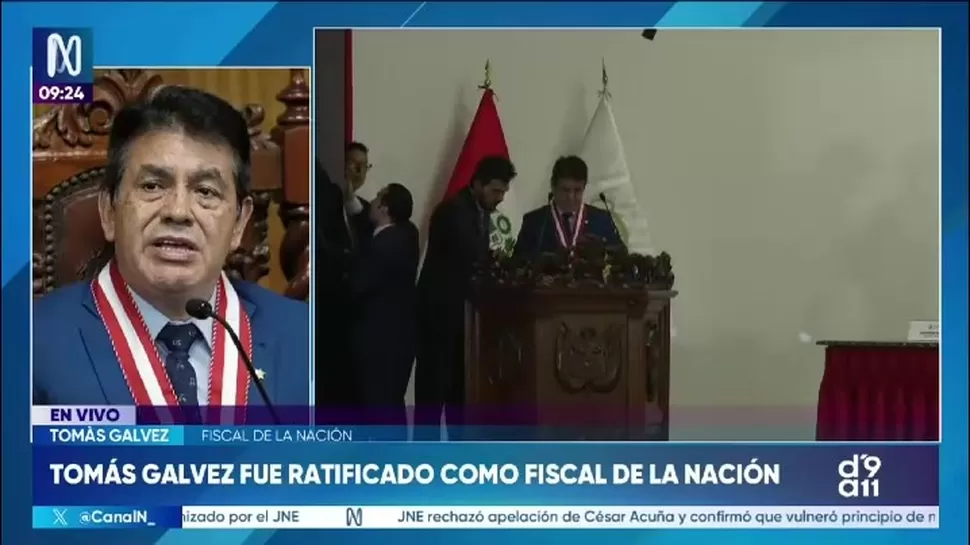 El fiscal de la Nación, Tomás Gálvez, informó que fue elegido con tres votos, que la juramentación será el viernes, que existen vacantes en la Junta de Fiscales Supremos, y que su gestión contempla la desactivación de equipos especiales y la promoción de una nueva ley orgánica del Ministerio Público.