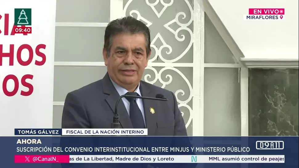 El fiscal de la Nación, Tomás Gálvez, anunció que el Ministerio Público contará con acceso a la información de llamadas realizadas desde los centros penitenciarios, como parte de un convenio suscrito con el Ministerio de Justicia.