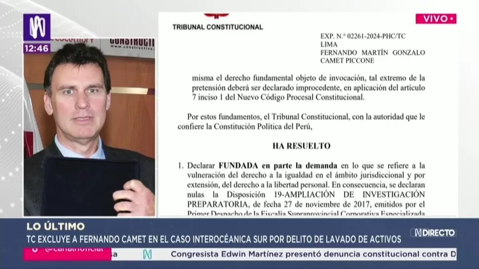 El Tribunal Constitucional declaró fundadas en parte las demandas de Fernando Camet, por vulnerar el derecho a la igualdad y ordenó anular la ampliación de investigación preparatoria