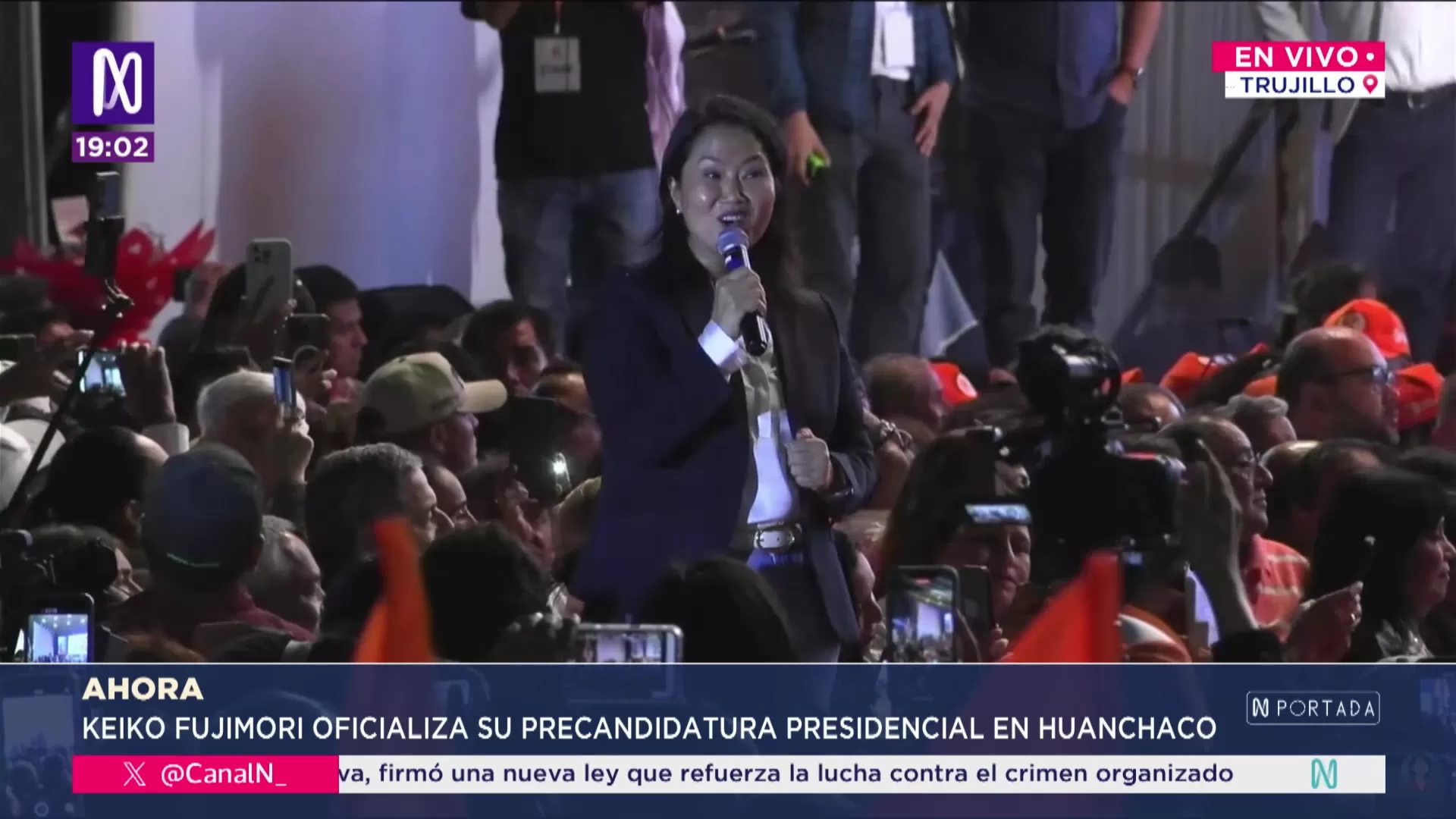 Desde la ciudad de Huanchaco, en Trujillo, Keiko Fujimori oficializó su precandidatura a la presidencia de la República. En su discurso, afirmó que no postulará al Senado ni buscará inmunidad, y presentó a los integrantes de su fórmula presidencial en Fuerza Popular: Luis Galarreta para la primera vicepresidencia y Miguel Torres para la segunda vicepresidencia.