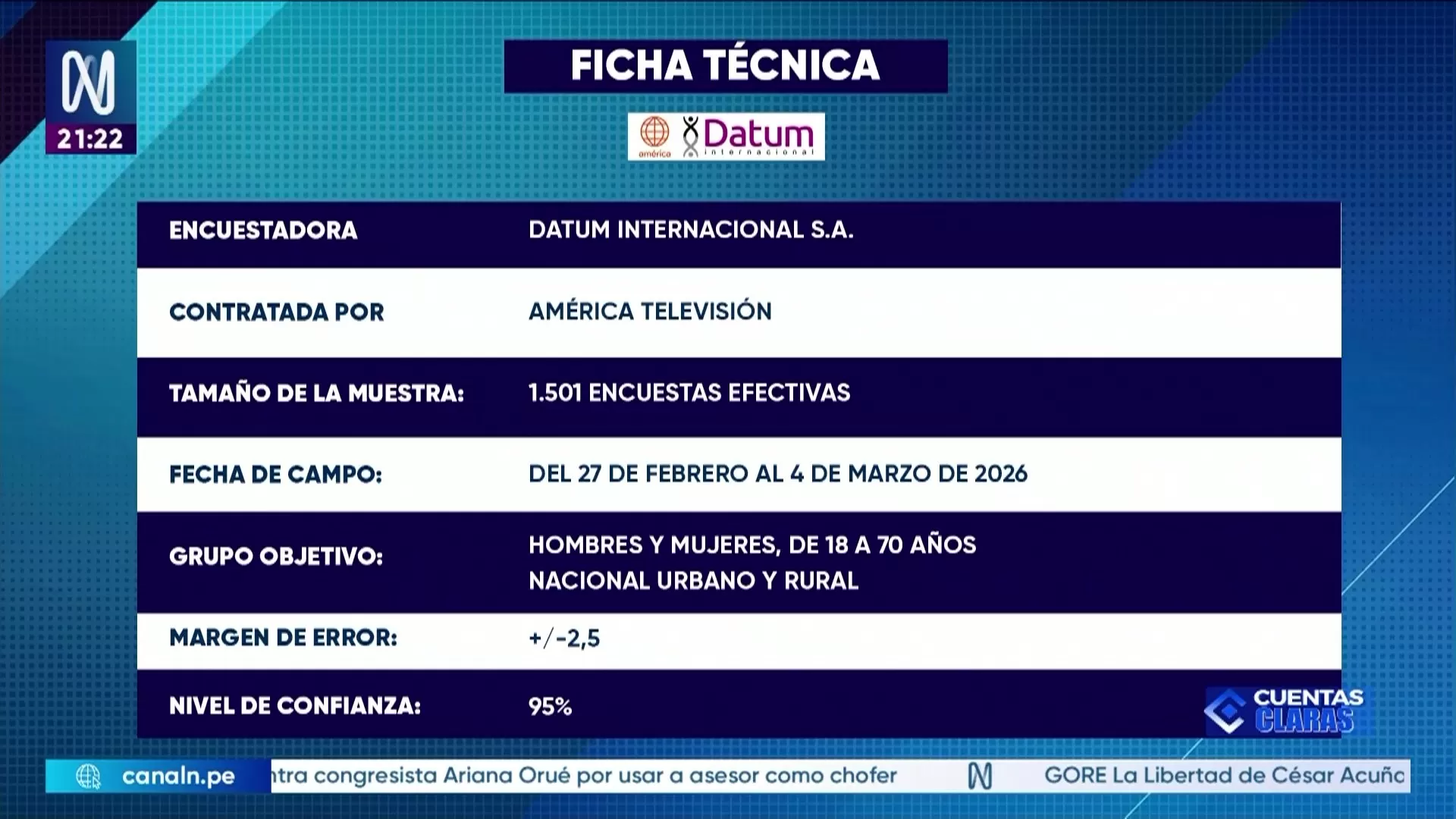 Urpi Torrado señaló que el proceso electoral 2026 registra niveles históricamente altos de indecisión e incertidumbre entre los votantes, según explicó en una entrevista en Cuentas Claras de Canal N luego de difundirse la más reciente encuesta de Datum Internacional. La gerenta general de la empresa sostuvo que el electorado todavía no reduce de manera importante el bloque de personas que no sabe por quién votar o que planea sufragar en blanco o viciado.