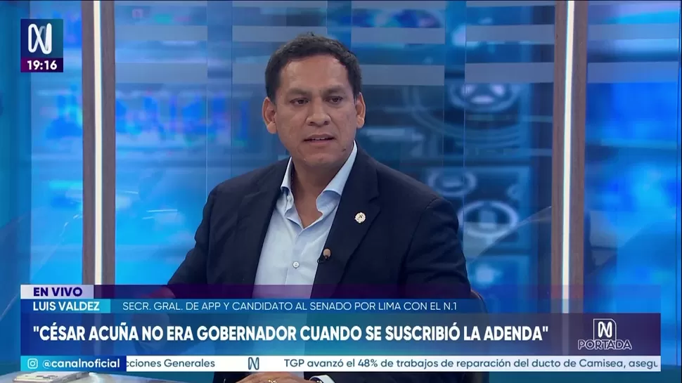 Durante una entrevista en el programa N Portada de Canal N, el dirigente sostuvo que la información difundida por el dominical es “parcialmente veraz” y afirmó que el líder de APP, César Acuña, no firmó el contrato ni la adenda vinculada a esa campaña.