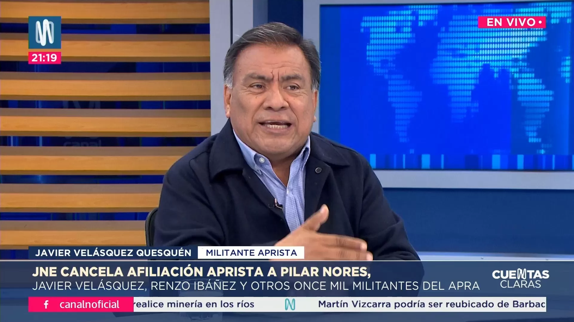 El expresidente del Consejo de Ministros, Javier Velásquez Quesquén, acusó una “intromisión burocrática” del Jurado Nacional de Elecciones (JNE) tras la cancelación de su afiliación al Partido Aprista Peruano (APRA), medida que también afectó a más de 11 mil militantes. En entrevista con Cuentas Claras de Canal N, calificó la decisión como arbitraria y anunció que presentó un recurso de apelación.