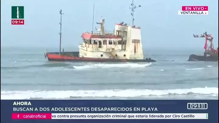 Dos menores de edad se encuentran desaparecidos en la playa Costa Azul de Ventanilla luego de ingresar a un buque encallado el domingo por la tarde, según informó la vocería de Defensa Civil del distrito. Los familiares de uno de los jóvenes, identificados como Juan Emilio Sánchez Alvarado, de dieciséis años, alertaron a las autoridades al no verlos salir de la peligrosa estructura.