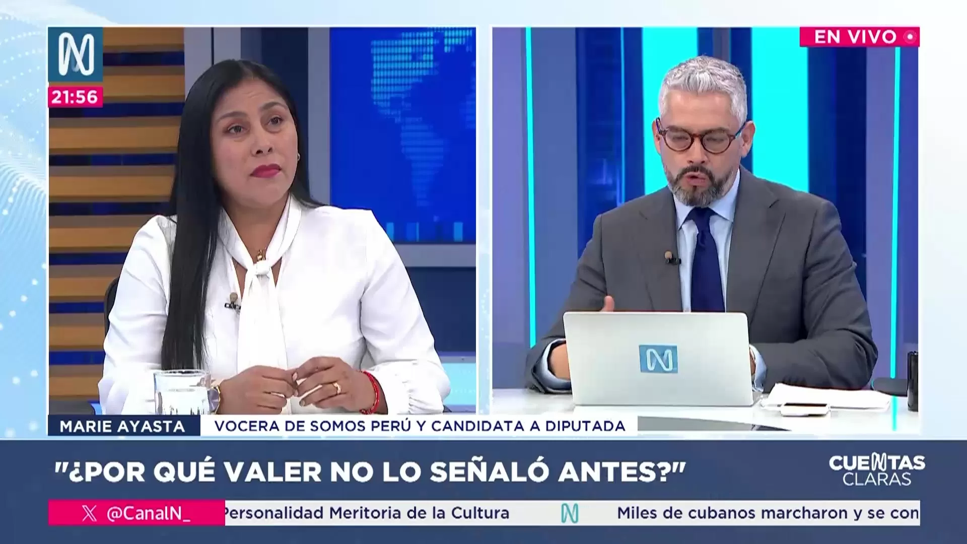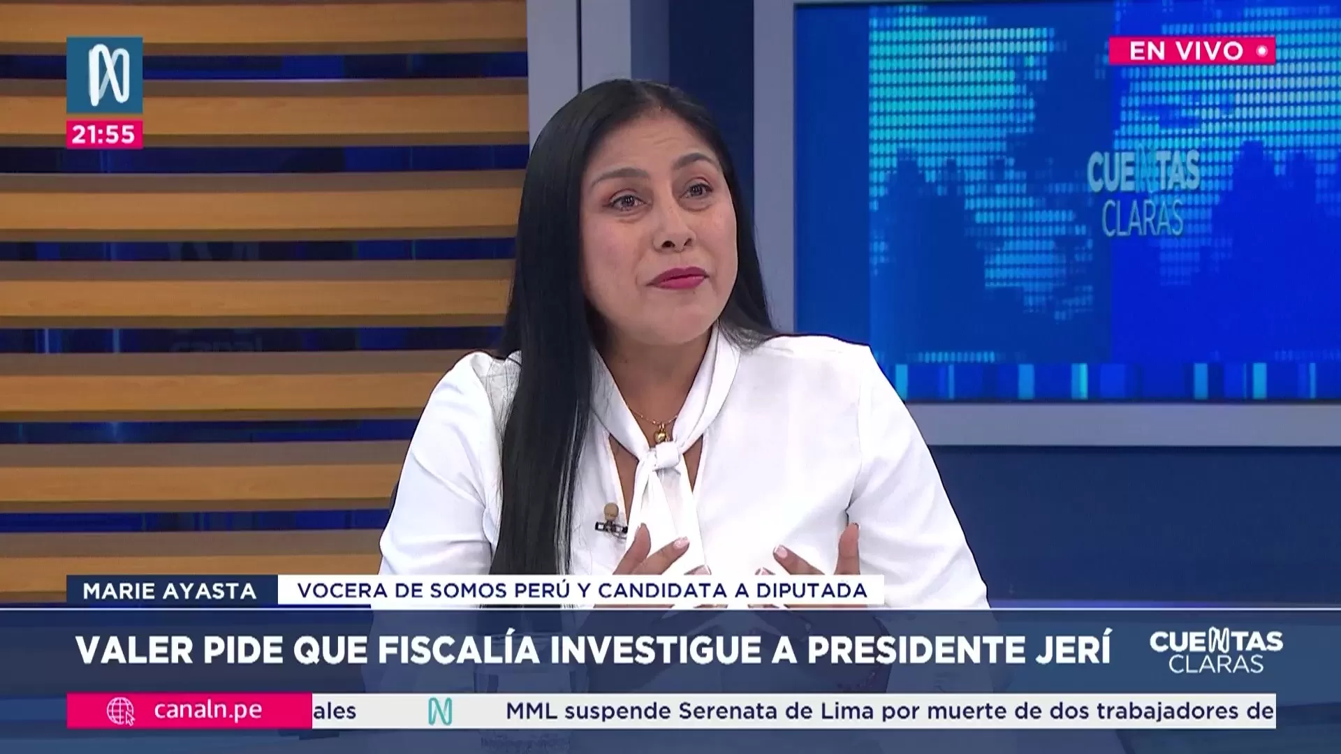La vocera de Somos Perú, Marie Ayasta, dijo que el presidente José Jerí debe "salir y decir las cosas como son" tras la reunión que sostuvo con el empresario chino Zhihua Yang en un restaurante de San Borja. Durante una entrevista en Cuentas Claras de Canal N, señaló que la ciudadanía necesita una explicación clara y transparente sobre este encuentro, el cual ha generado críticas y sospechas por haberse realizado sin registro oficial.