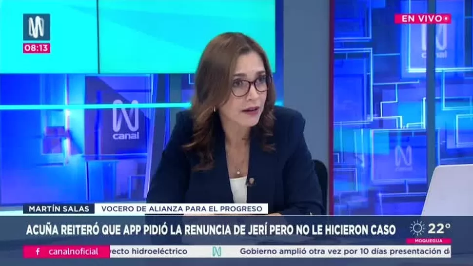 El vocero de Alianza para el Progreso (APP), Martín Salas, confirmó que César Acuña solicitó públicamente la renuncia de José Jerí a la presidencia de la República, pero su bancada no ha respaldado la postura del líder partidario.
