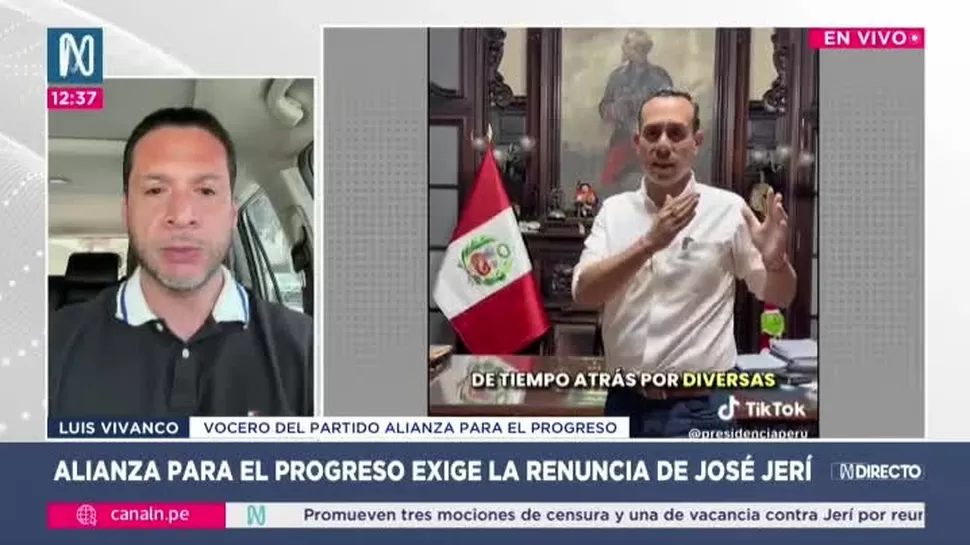 El vocero de Alianza para el Progreso (APP), Luis Vivanco, reiteró que su partido considera insostenible la permanencia de José Jerí como presidente del Congreso y encargado de la presidencia de la República.