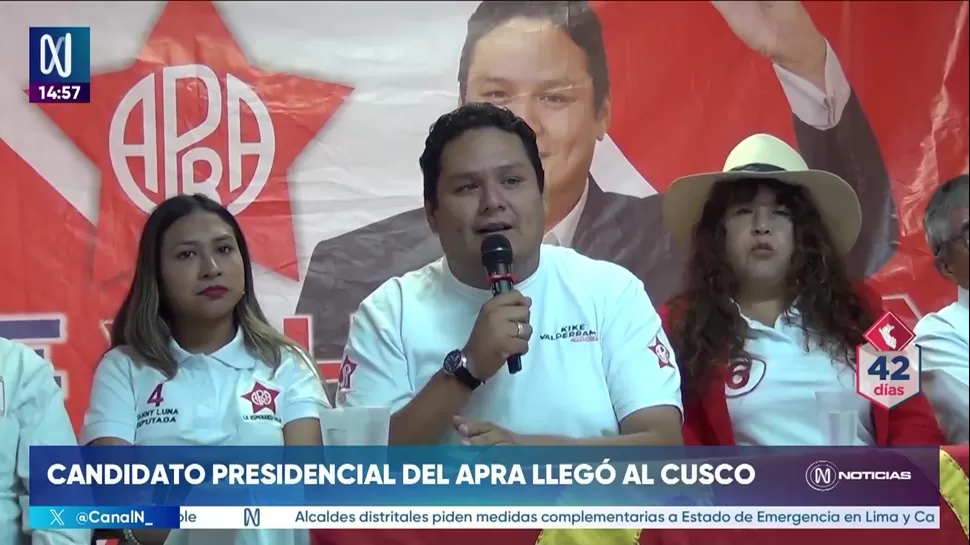El candidato presidencial del Partido Aprista Peruano (APRA), Enrique Valderrama, intensificó su campaña en la región Cusco con actividades en la ciudad imperial y en Quillabamba, provincia de La Convención, donde presentó propuestas vinculadas a empleo, infraestructura y desarrollo energético.