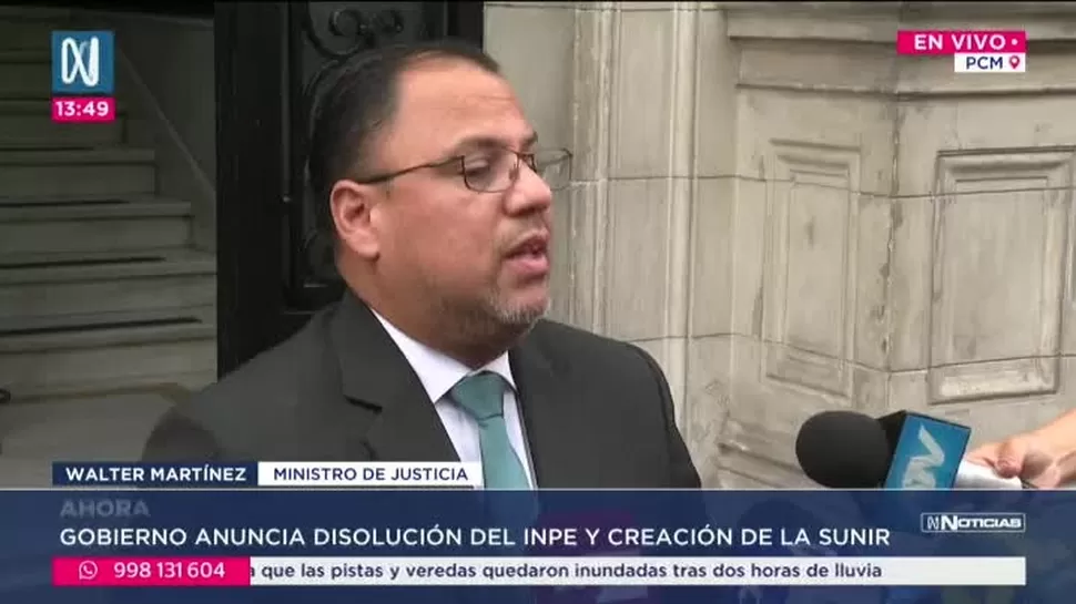 El Gobierno aprobó la creación de la Superintendencia Nacional de Internamiento y Resocialización (SUNIR), una nueva entidad que surge de la fusión del Instituto Nacional Penitenciario (INPE) y el Programa Nacional de Centros Juveniles (PRONACEJ). Así lo informó el ministro de Justicia, Walter Martínez, tras la sesión del Consejo de Ministros.