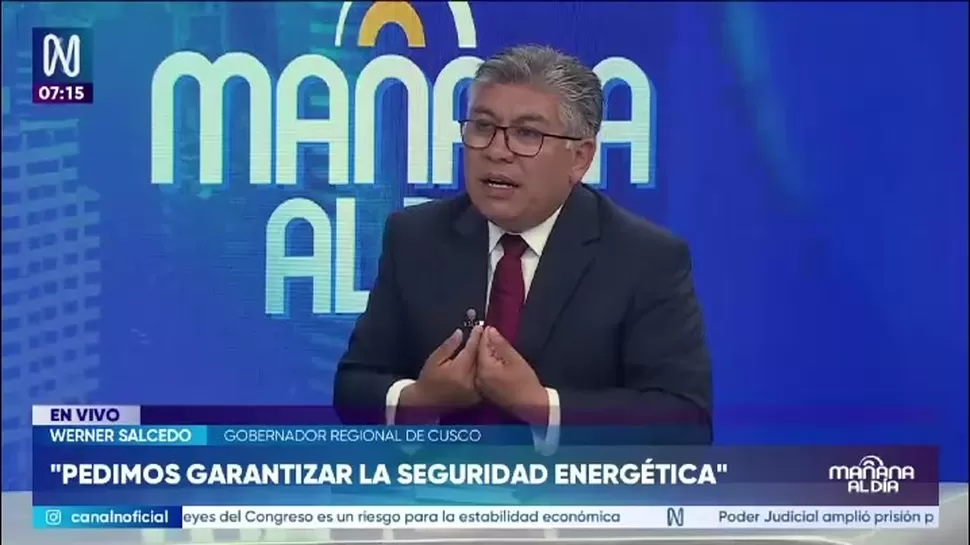 El gobernador regional de Cusco, Werner Salcedo, afirmó en Canal N que la falla en Megantoni atribuida a la empresa TGP generó un impacto que no solo afecta a su región, sino a todo el país.