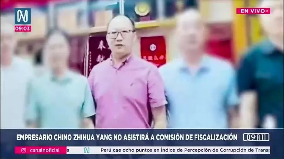 El empresario chino Zhihua Yang no asistirá a la sesión de la Comisión de Fiscalización del Congreso programada para este lunes, en el marco de la investigación por las reuniones extraoficiales que sostuvo con el presidente José Jerí.
