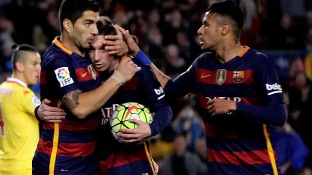 En el Camp Nou abrió el marcador el argentino Lionel Messi (minuto 13), Suárez firmó un 'póquer' por segundo partido consecutivo (63, 74 y 77, ambos de penal, y 88) y el brasileño Neymar también participó (85, de penal).