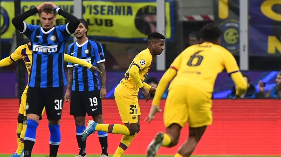 Carles Pérez y Ansu Fati dieron este martes un triunfo por 2-1 al Barcelona, ya matemáticamente clasificado como primero, contra el Inter en el estadio San Siro de Milán y enviaron al conjunto milanés a la Europa League.
