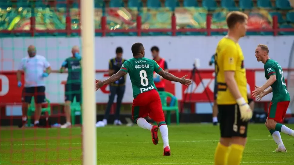 Farfán volvió con todo a las canchas y marcó el empate para el Lokomotiv. | Foto: Lokomotiv
