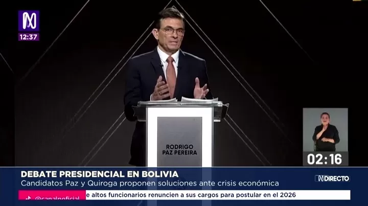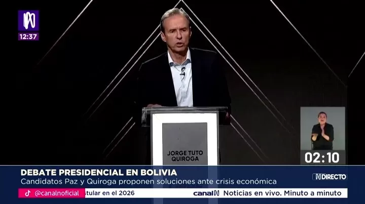A una semana del balotaje del 19 de octubre, se realizó el debate presidencial en Bolivia entre los candidatos Rodrigo Paz y Jorge Quiroga. La transmisión marcó el único encuentro televisado entre ambos aspirantes, quienes buscan suceder al presidente Luis Arce, cuyo mandato culmina el 8 de noviembre. Las propuestas se centraron en la crisis económica, la inflación y la escasez de combustibles, problemas que ambos calificaron como urgentes.
