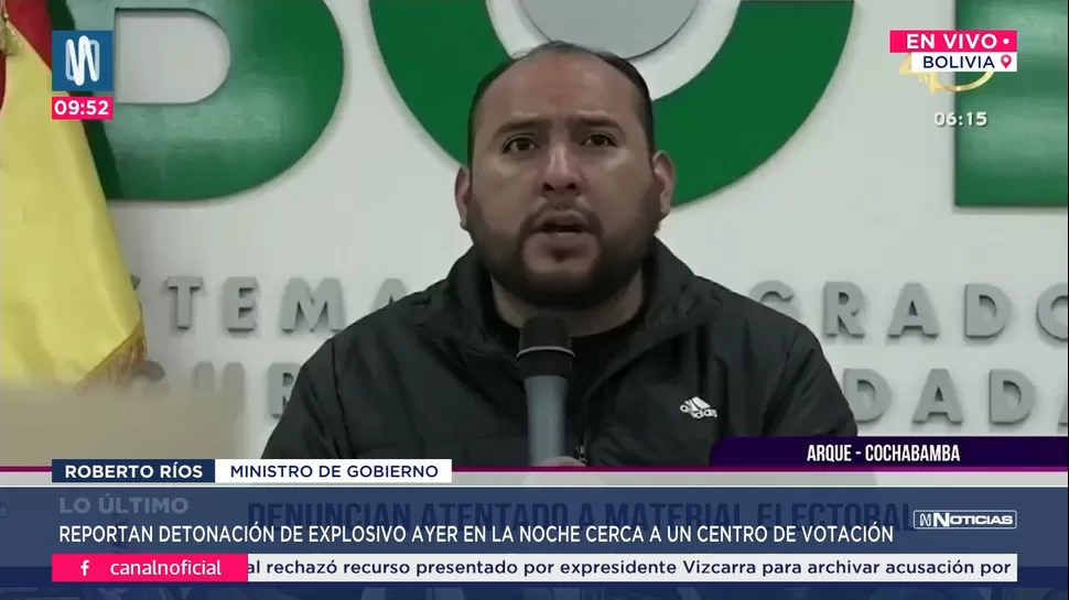 El ministro de Gobierno, Roberto Ríos, confirmó en rueda de prensa que el estallido no afectó el cronograma ni la instalación de las mesas de sufragio previstas para este domingo. Según explicó, el caso está bajo investigación y, hasta el momento, no se han reportado víctimas.