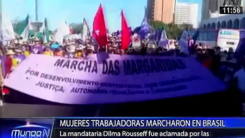 Unas 35.000 mujeres de zonas rurales de Brasil marcharon por la capital para apoyar a la atribulada figura de la presidenta Dilma Rousseff, quien cerró la procesión con un discurso en el estadio mundialista de la ciudad.