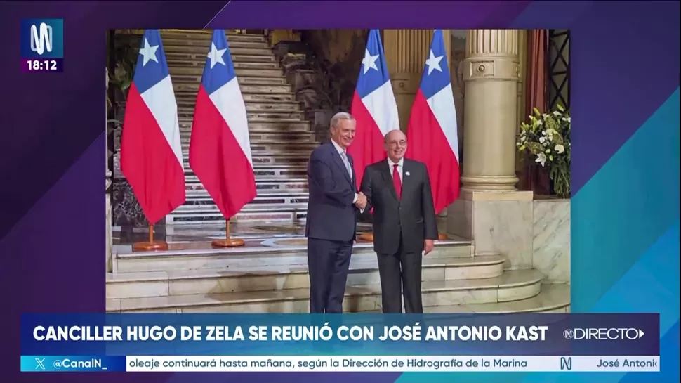 El canciller del Perú, Hugo de Zela, sostuvo una reunión con el presidente electo de Chile, José Antonio Kast, en la ciudad de Santiago, en la víspera de la ceremonia de asunción del nuevo mandatario chileno.